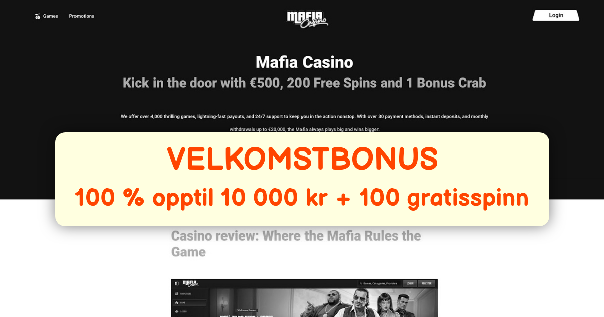 Mafia Casino er det ultimate valget for norske spillere som søker spenning og pålitelighet i ett. Vi byr på en generøs velkomstbonus på 100% opptil 5000 kr, med et rimelig omsetningskrav på 35x, slik at du raskt kan komme i gang med dine favorittspill. Lisensiert av Malta Gaming Authority, sikrer vi et trygt og rettferdig spillmiljø for alle i Norge. Nyt fordeler som lynraske uttak innen 24 timer, dedikert 24/7 kundestøtte på norsk, og et enormt utvalg av spilleautomater, bordspill og live casino-opplevelser. Våre beste spilleautomater kommer fra ledende leverandører som NetEnt, Pragmatic Play og Evolution, med tusenvis av titler som passer enhver smak. Mobil casino er sømløst tilgjengelig via app eller nettleser, så du kan spinne på farten overalt i Norge. Innskudd og uttak støttes med trygge metoder som Visa, Mastercard, Trustly og e-lommebøker som Skrill og Neteller, alt i NOK for enkelhet. Som et topp nettcasino i Norge tilbyr vi mobil casino bonus for ekstra verdi, og vår rask utbetaling sikrer at gevinstene dine når kontoen din fort. Bli med i dag og opplev mafia-stemningen med ekte vinnersjanser!